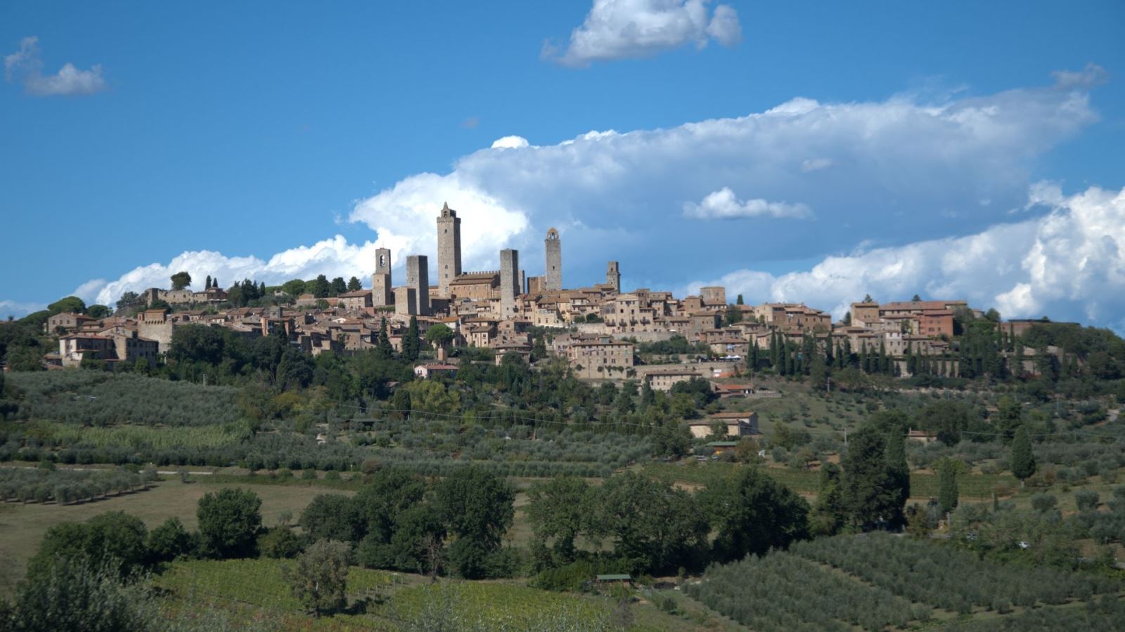 The next part of the trail took me through a meadow of tall grass and flowers to the main road to San Gimignano, and the hilltop town’s famous medieval towers came into view.