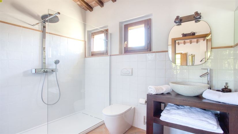 The area is surrounded by various villas, which look onto the pool. From the pool there are pretty views over the roof tops onto Gaiole and the Chianti hills beyond the town. There is a small gym with showers available for guests and residents to use.
