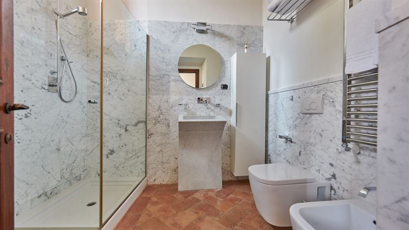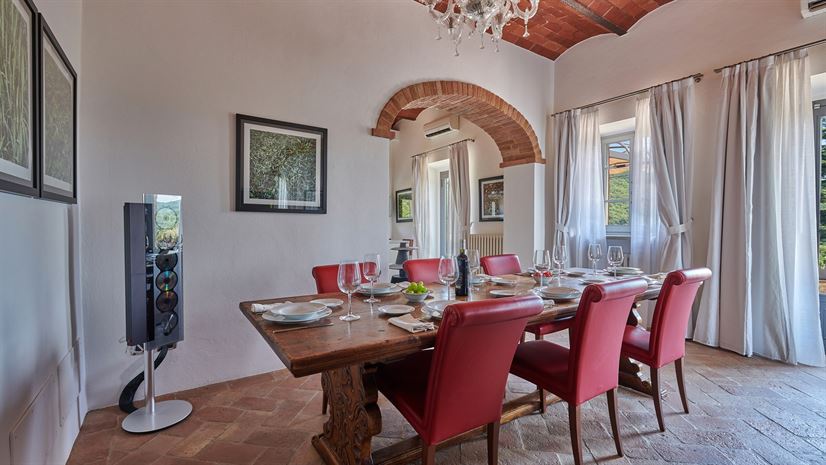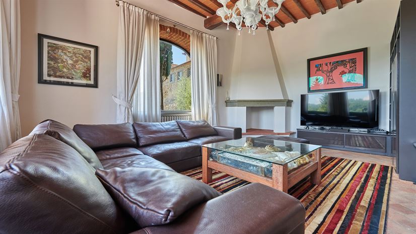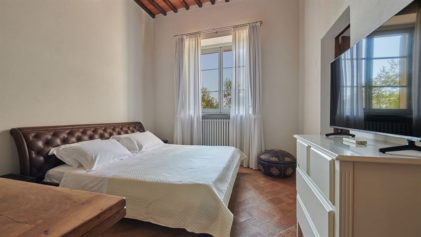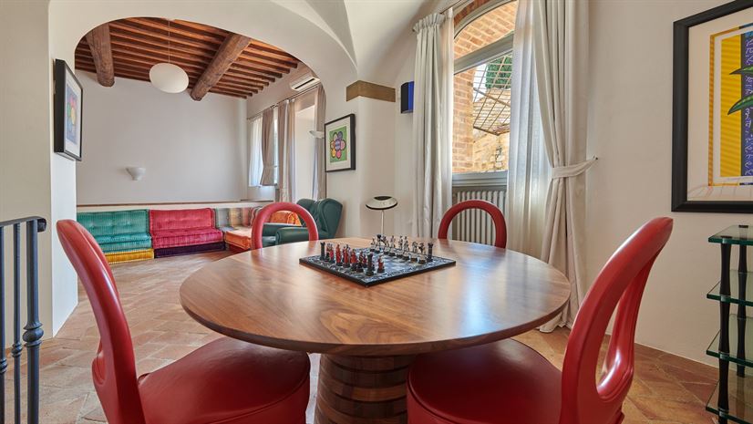 Casa Boccaccio is a spacious, design-led apartment nestled in a small historic hamlet within a former medieval castle comprising ten residences. This semi-detached retreat seamlessly blends Tuscan heritage with modern style, offering a private pool, a large furnished terrace, and an elegant interior. It is perfect for guests who value calm, refinement, and privacy. Surrounded by vineyards and olive groves, it commands breathtaking 360-degree views across the Chianti Classico landscape.