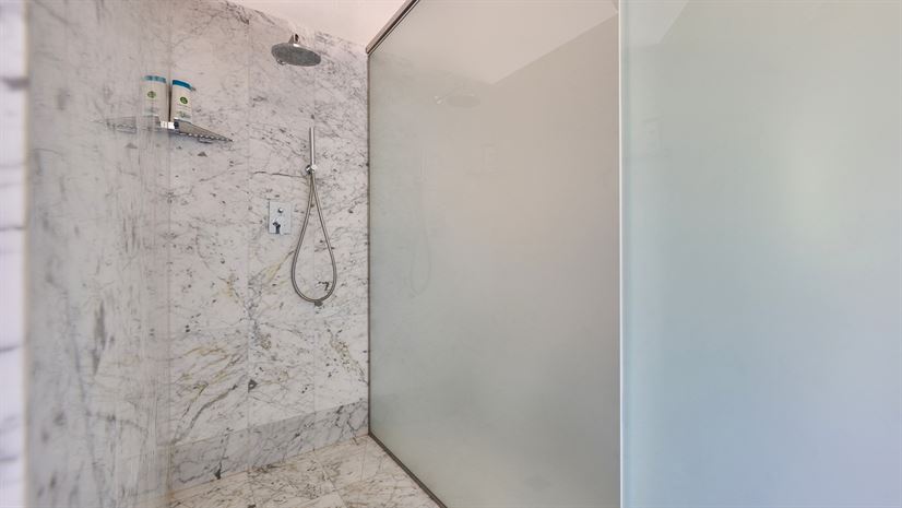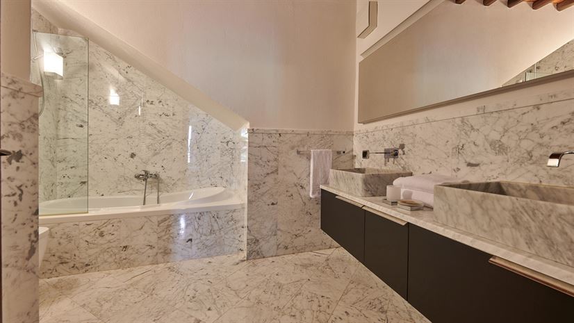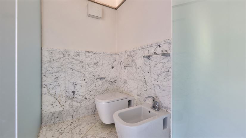 Wardrobe, bathtub, shower, double sink, WC, bidet.