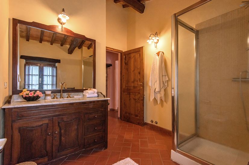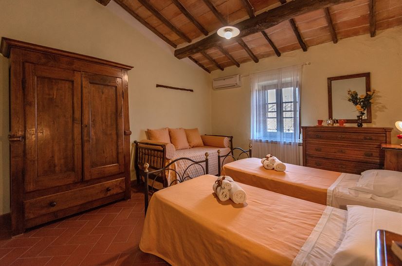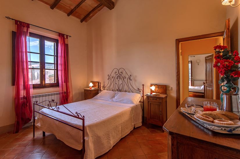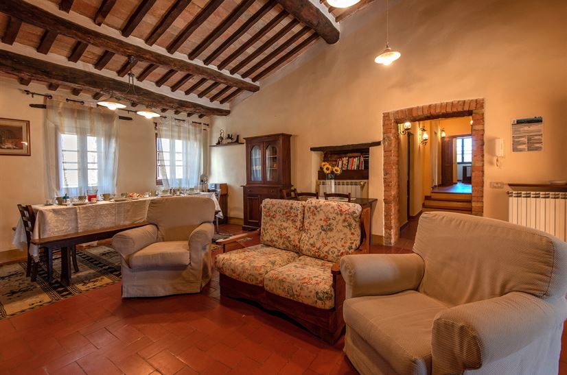 Inside, terracotta floors, wooden beam ceilings and comfortable furnishings create a warm, authentic Tuscan atmosphere.