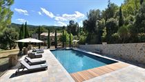 Furnished: sunloungers, parasols and a covered pergola with a table and chairs, open shower, pool room with WC, sink & shower