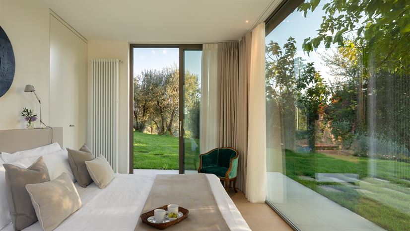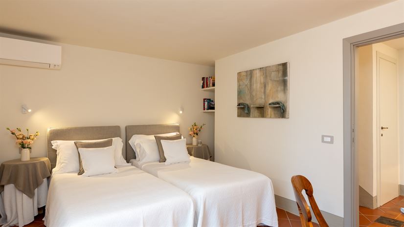 The villa overlooks olive groves dotted with contemporary sculptures. On the estate, there is also an open-air theatre where the owners host concerts and performances during the summer months, adding a unique cultural touch to your stay.