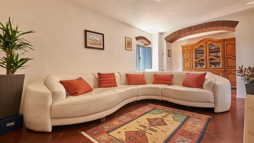 Inside, the villa features a calm, neutral décor, modern bathrooms and a stylish mix of contemporary and antique furnishings designed for comfort and relaxation.