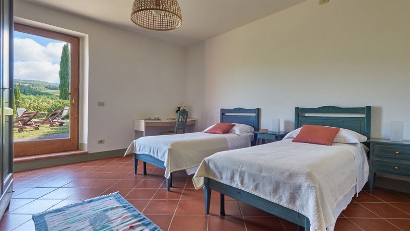 The house is quietly located yet perfectly positioned for exploring the region. The medieval village of Volpaia, home to popular restaurants like Bar Ucci and La Bottega, is a five-minute drive or about a 40-minute walk uphill. Radda in Chianti, with its shops, restaurants, and a COOP supermarket, is just five kilometres away. The organic winery L’Erta di Radda is right next door. Siena, Florence, San Gimignano, and Arezzo are all ideal for day trips.