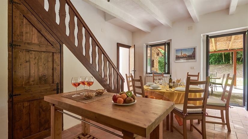 Inside, La Mita features traditional terracotta floors, wooden beam ceilings, and white-painted walls, creating a bright and homely atmosphere. The furnishings are tasteful and comfortable. The open-plan living area and cozy bedrooms provide ample space for couples or familie; it's a welcoming retreat with authentic Tuscan charm.