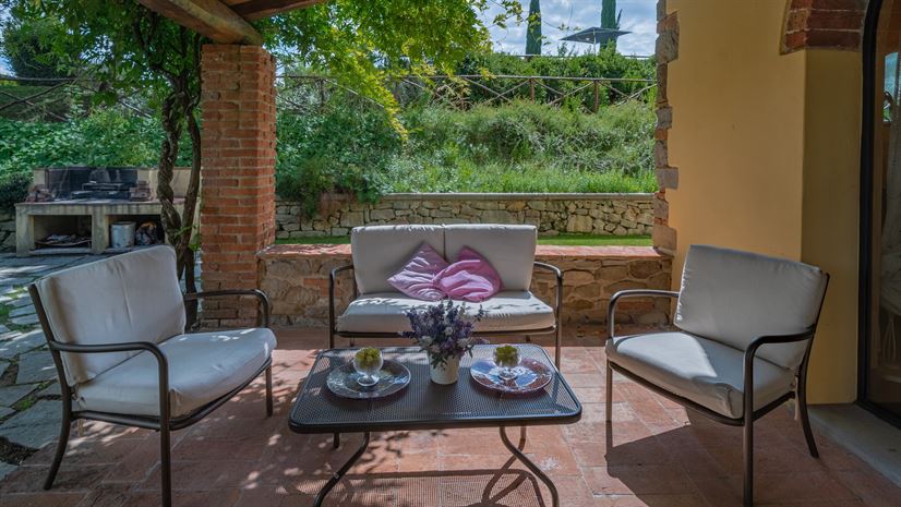 A picturesque villa set amongst fantastic views of the surrounding valleys and the Apennine Mountains. Poggio Alle Fonti is a single private rental property with lush gardens and idyllic terraces - perfect for al fresco dining, and for relaxing with a cup of coffee or glass of local wine. The largest pergola features a long and sturdy dining table so everyone can enjoy a delicious home-cooked meal together in the shade. The pool area is furnished with sunloungers and parasols, as well as another pergola for relaxing after a swim. The grounds are fully fenced and the villa offers complete privacy.