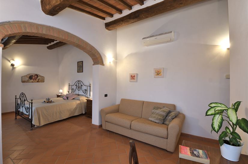 Independent cottage on two floors with air conditioning in the bedrooms, located in a sloped garden at the top of the resort with a large, furnished terrace providing breathtaking views of the Chianti countryside.