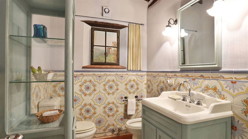 Inside, the villa exudes warmth, with terracotta floors, wooden beams, and hand-crafted furnishings creating an inviting atmosphere. Every detail has been carefully curated to preserve the authenticity of a historic farmhouse while offering modern comforts.