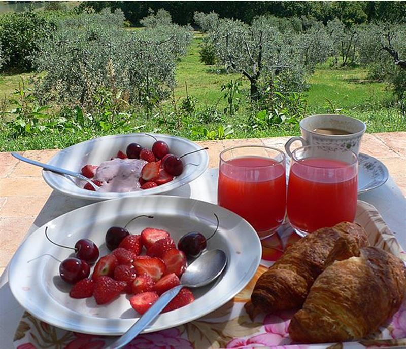 Italian people, no matter where they live, start their day with sweets: biscuits, cakes, marmalade and jam, chocolate, pastry with custard. They go along with coffee, tea or cappuccino. Note that a cappuccino is usually a breakfast hot drink and Italians never drink it after 11.00, not to mention after lunch or dinner.